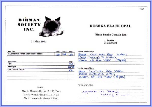 were not awarded in this instance as Opal was still a kitten